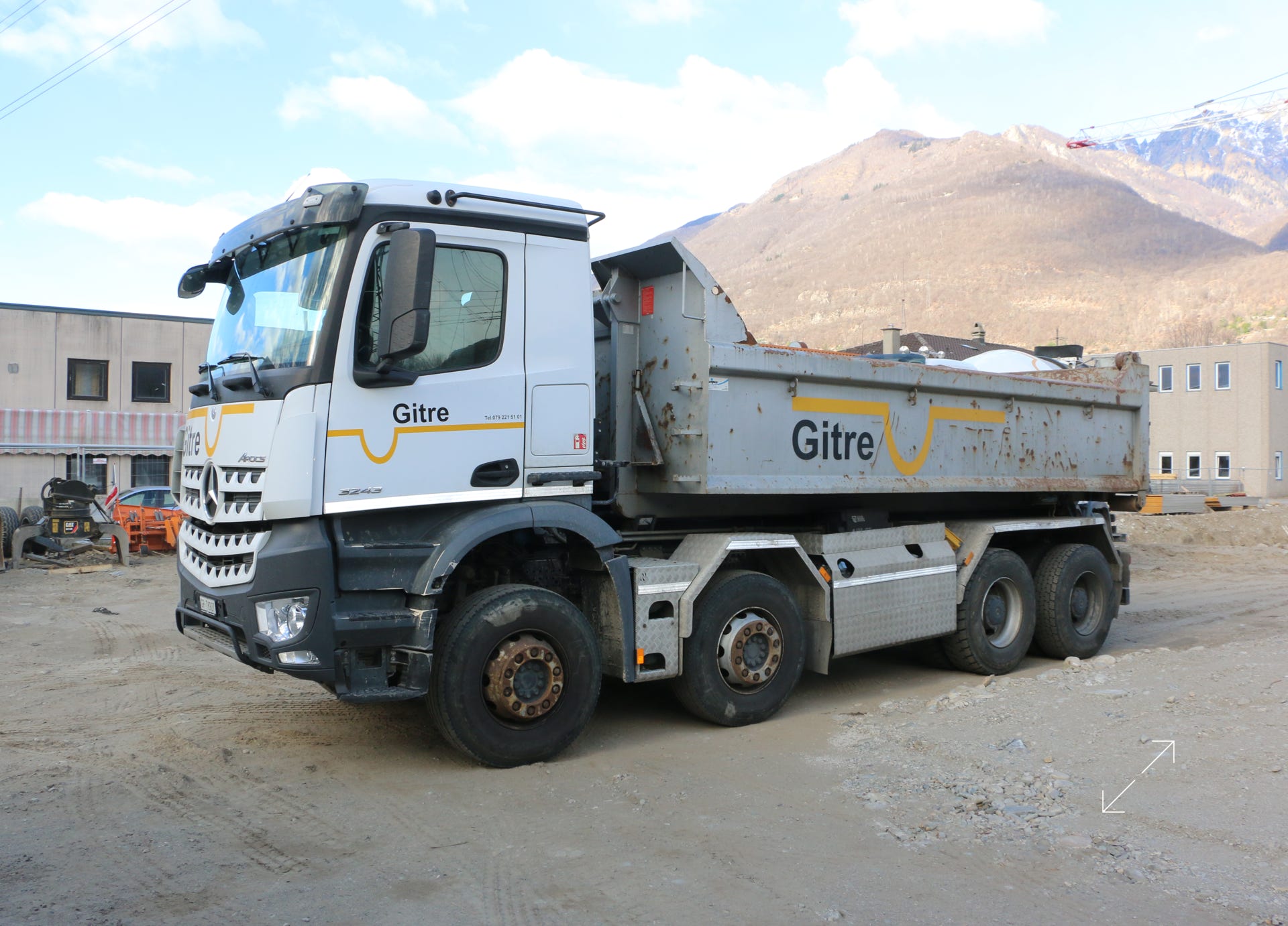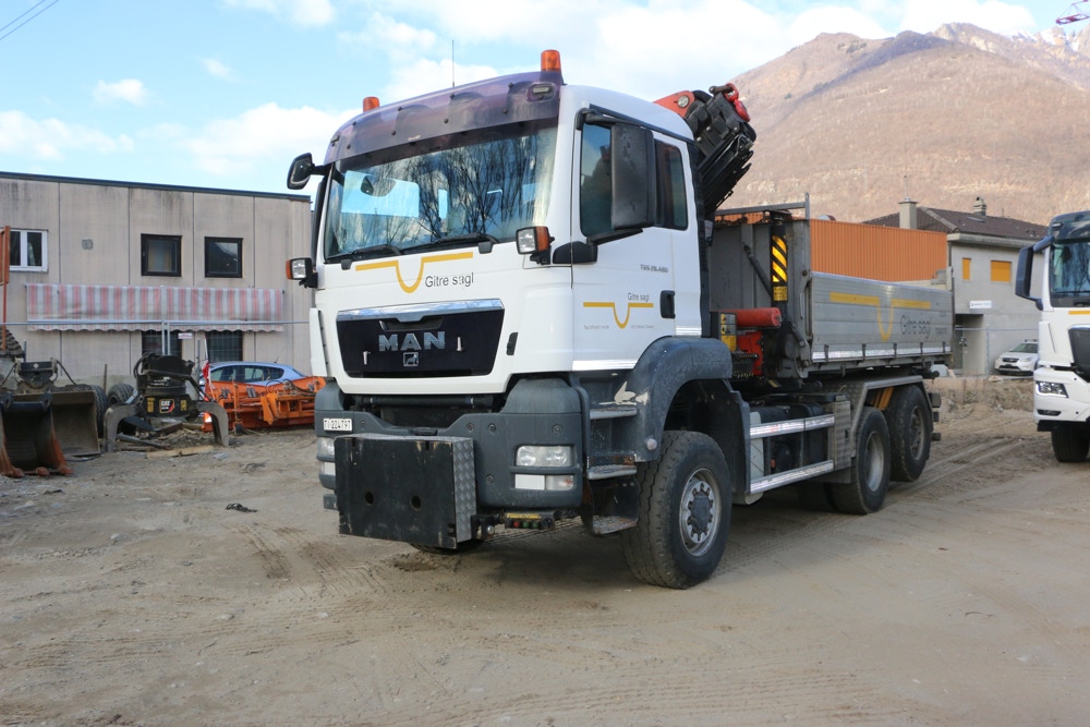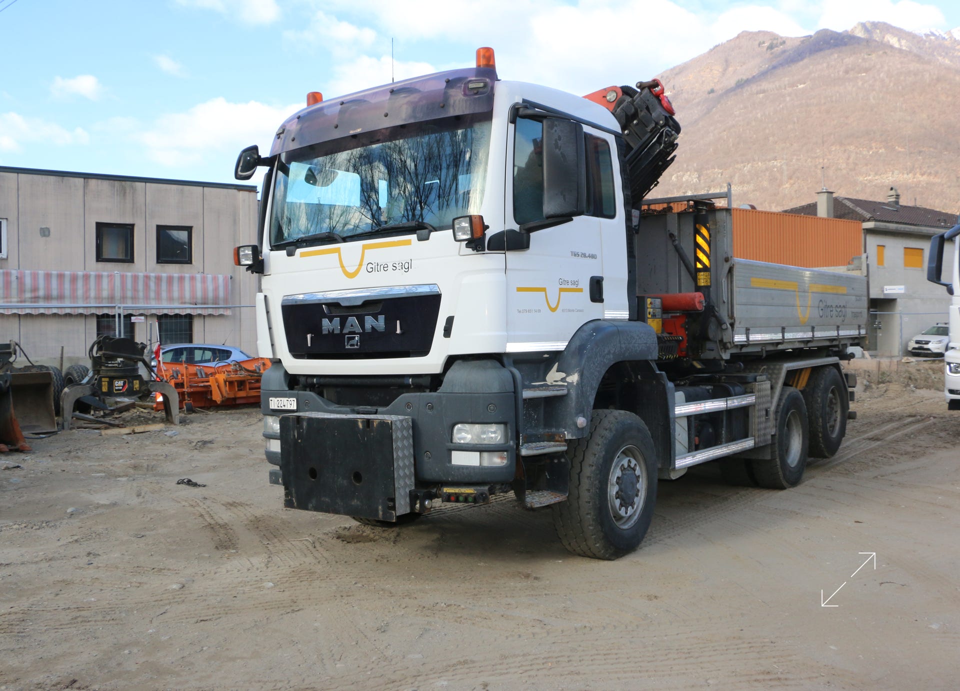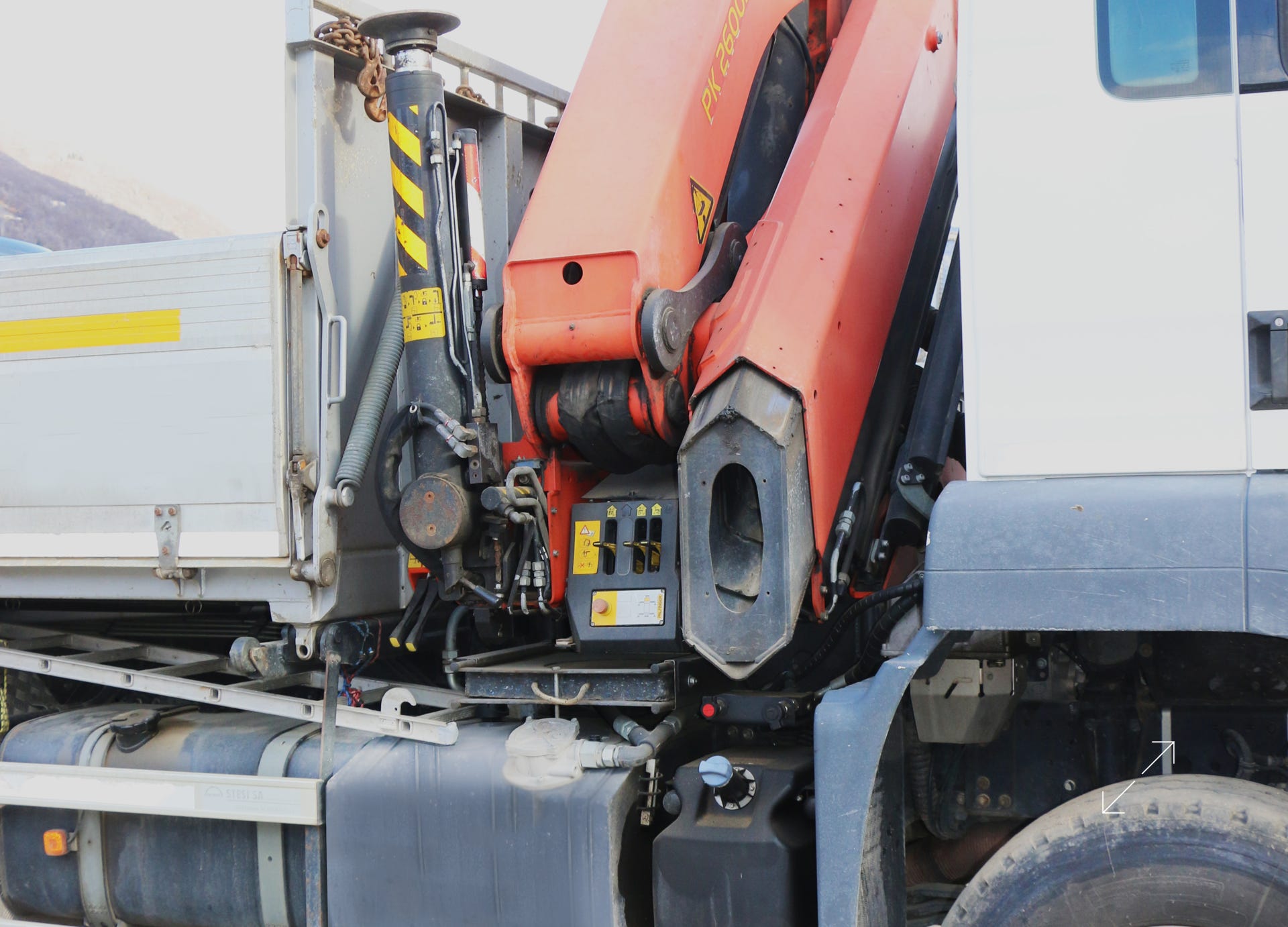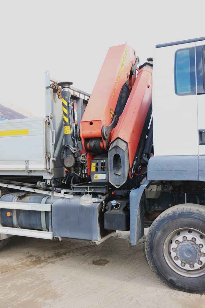 Autocarro 3 assi ribaltabile – 26 Ton con Gru di carico