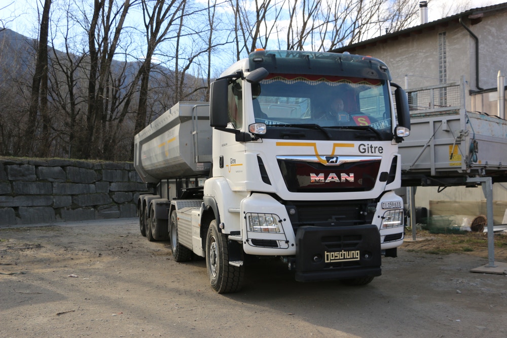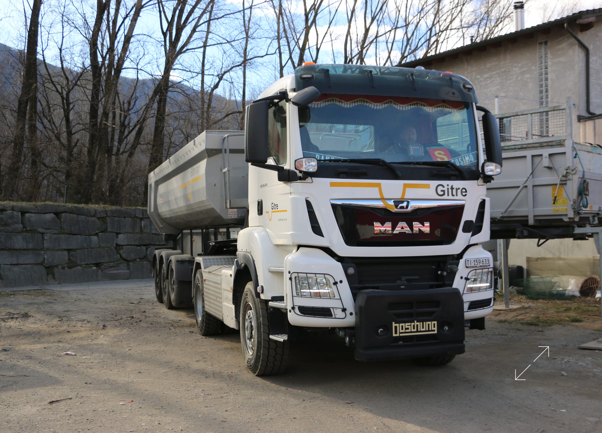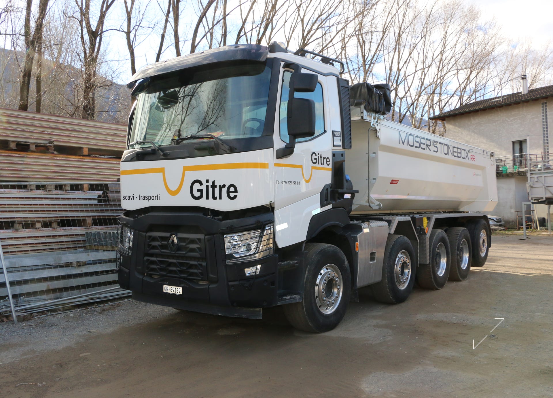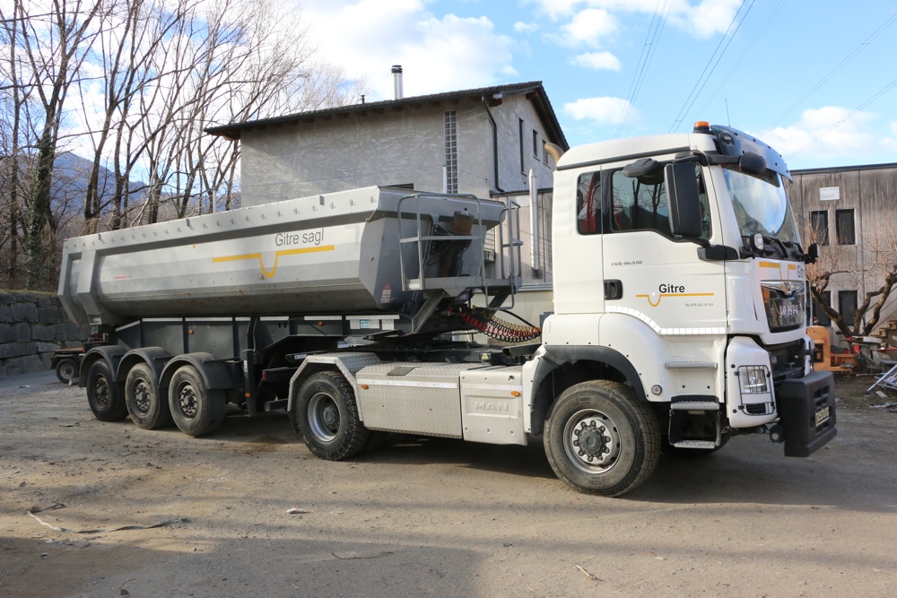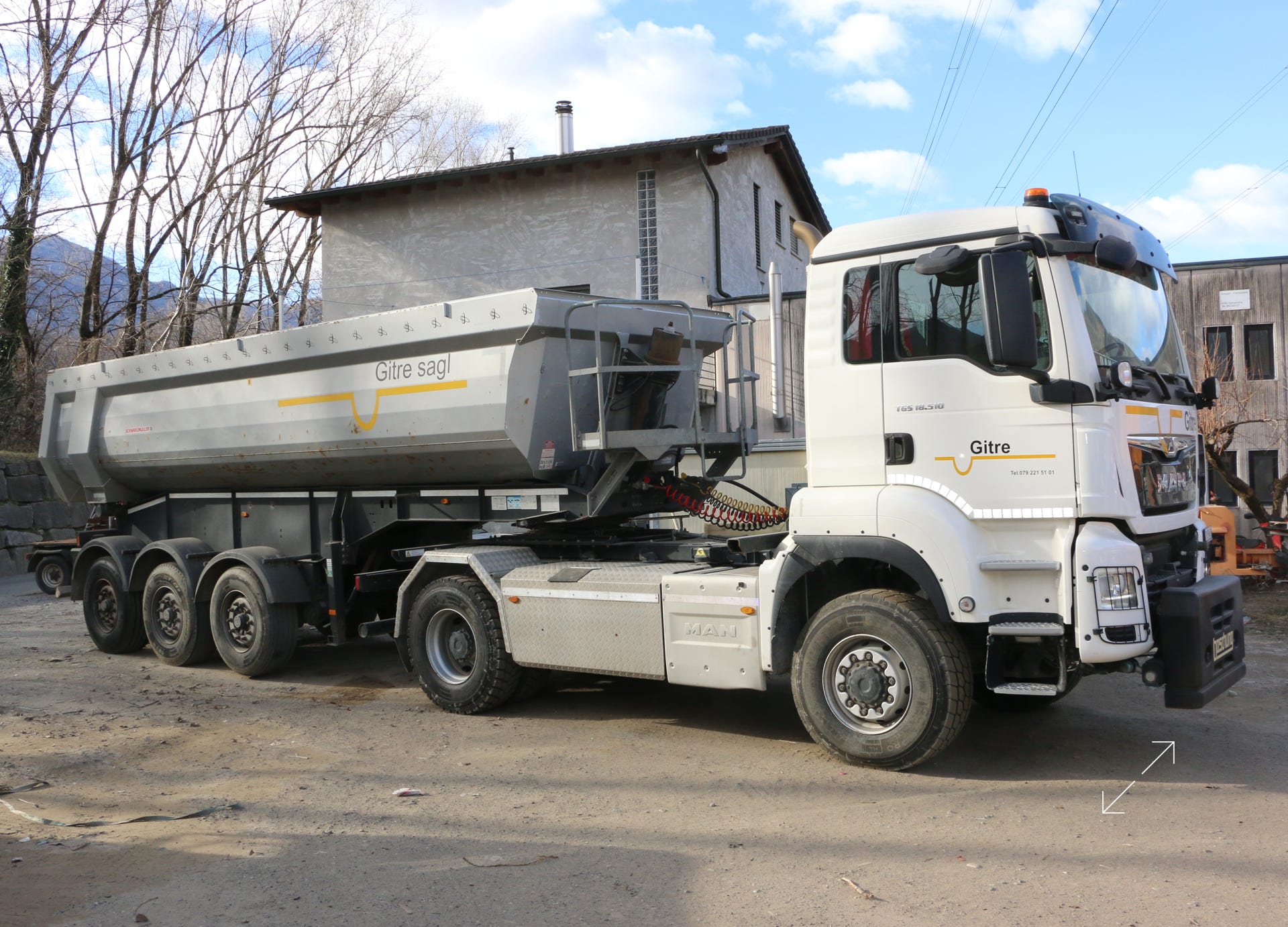 Autocarro 3 assi ribaltabile – 26 Ton con Gru di carico